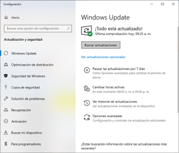 Para verificar que el sistema no cuente con actualizaciones pendientes de Windows, selecciona la lupa en la barra de tareas y escriba “Buscar actualizaciones” y hacer clic en la opción antes mencionada.