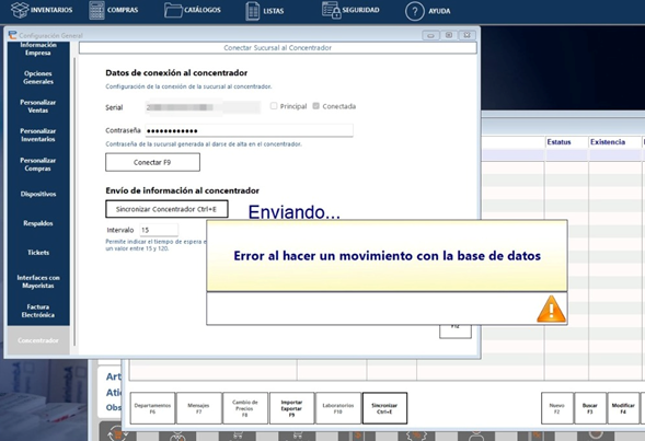 Si durante el proceso de sincronización aparece el mensaje “Error al hacer un movimiento con la base de datos” verifica que el equipo no cuente con actualizaciones pendientes de Windows.